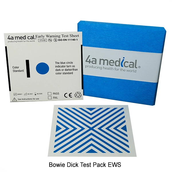4A Bowie-Dick Test Packs verify steam penetration and detect air leaks. Available in 200, 400, and EWS models. Ensure daily sterilizer safety.