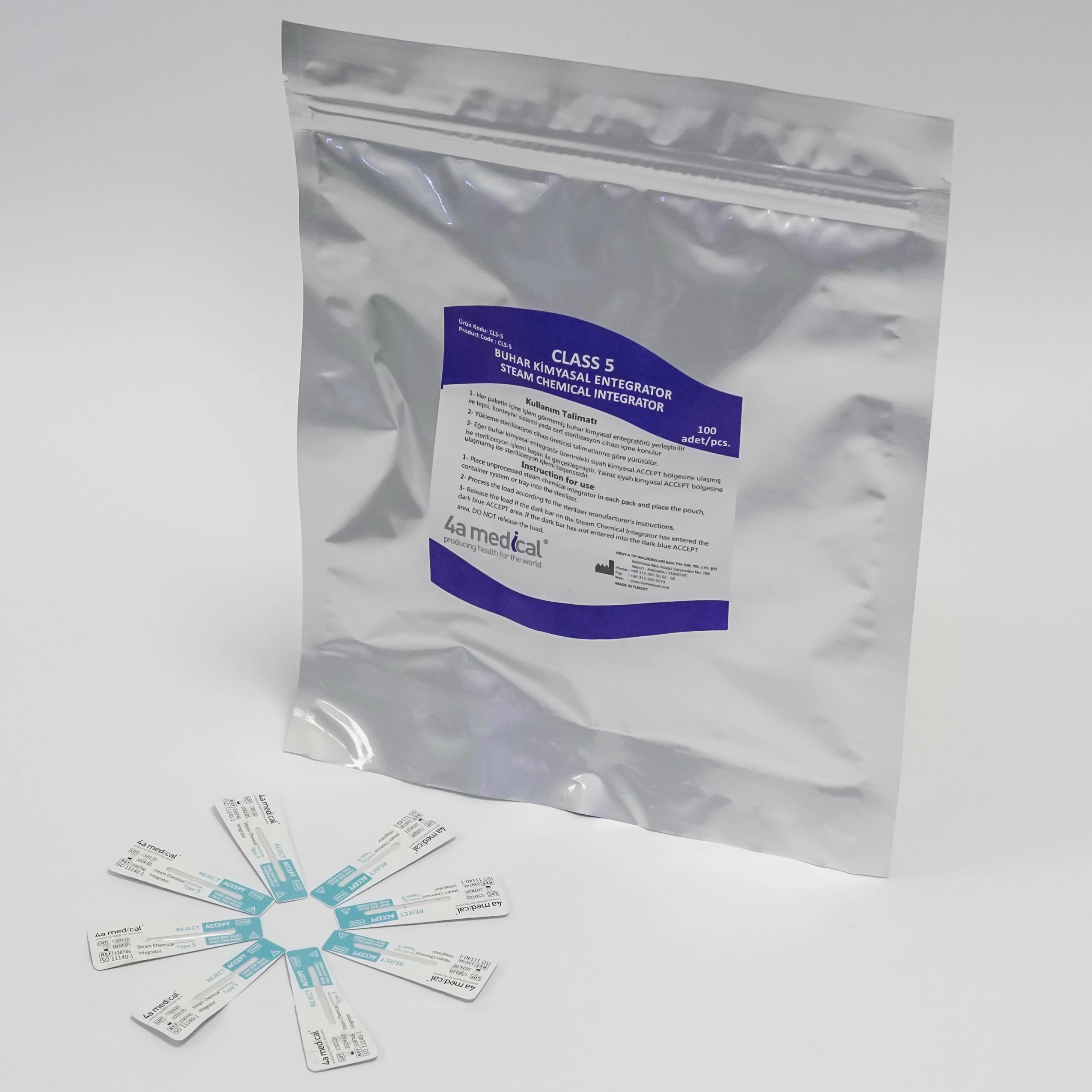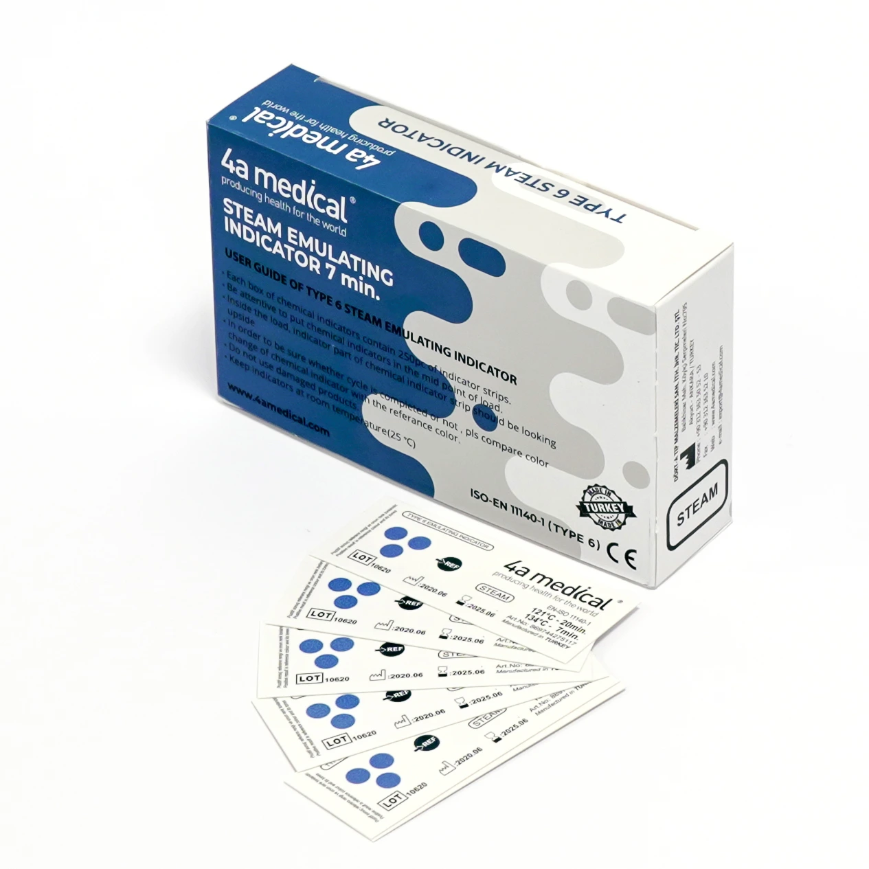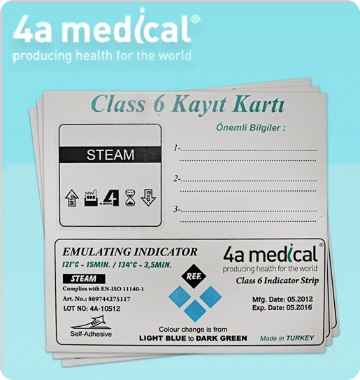 Sterilizasyon kontrol ürünleri, toksik olmayan, su bazlı boya ile üretilir. ISO11140-1 sertifikalı indikatörlerimiz, sterilizasyonda kolaylık sağlar.